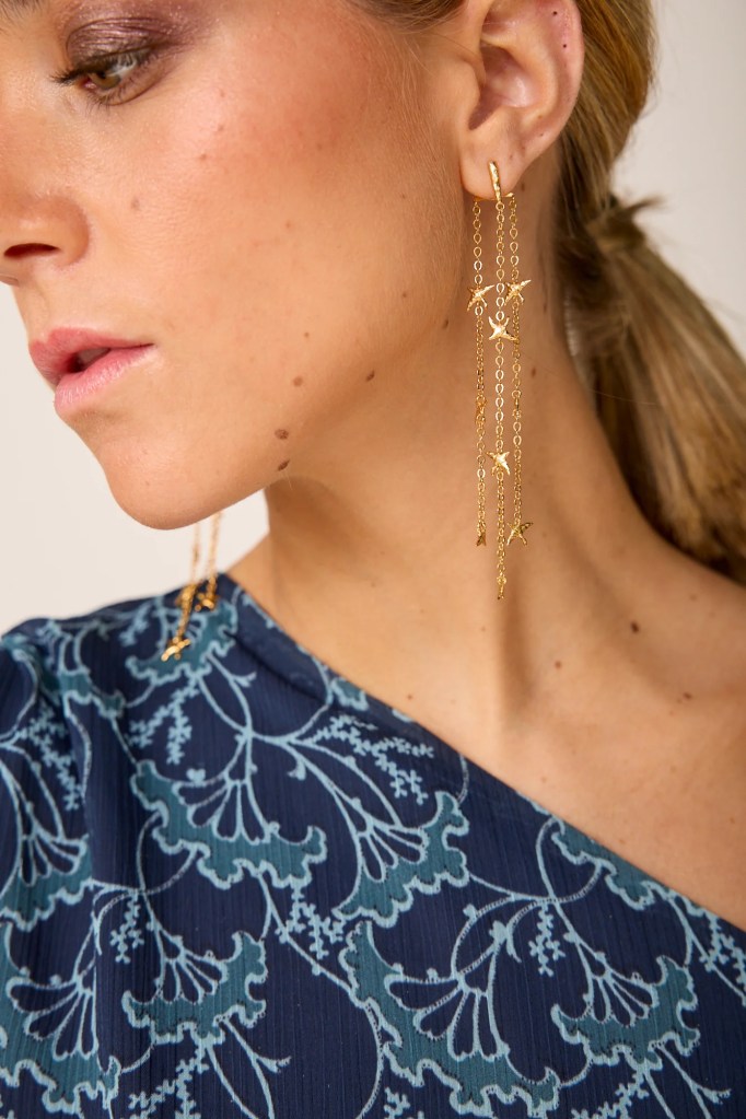 Los Pendientes Osaka son la opción perfecta para bodas, ya sea que seas la novia o una invitada especial. Su diseño elegante y el brillo del oro los convierten en un accesorio ideal para completar cualquier look nupcial. Los detalles dorados y el suave movimiento de las cadenas aportan un toque romántico y refinado, perfecto para una ocasión tan memorable.